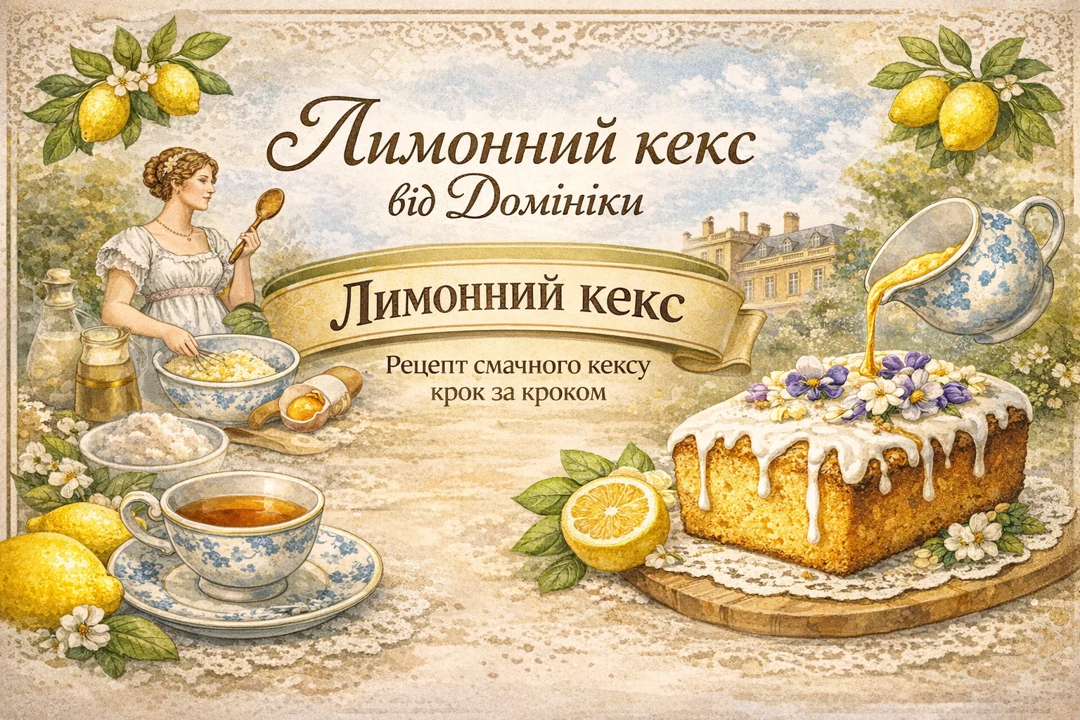 Рецепт лимонного кексу покрокова інструкція в естетичному вінтажному стилі