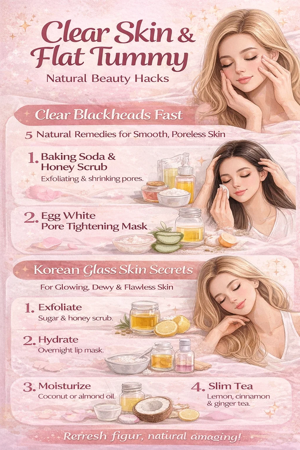 10 Viral Beauty Hacks Korean Glass Skin, Clear Blackheads Flat Tummy Tips