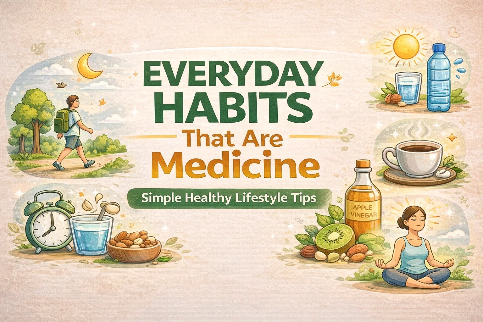 Transform your daily routine with these simple “Everyday Habits That Are Medicine” for a healthier body and mind. 🌿 From morning sunlight to mindful breathing, small lifestyle changes can make a massive impact on your energy and well-being. This guide highlights natural ways to feel your best, whether it’s through hydration, nutrient-dense snacks, or better sleep habits.