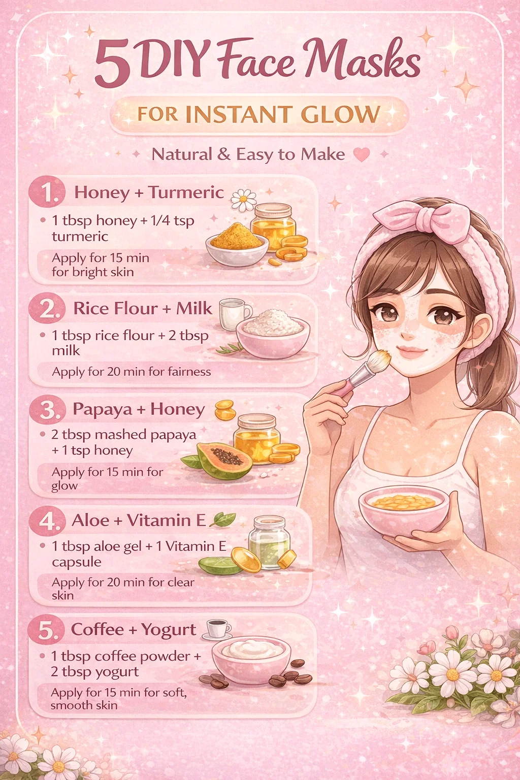 5 DIY Natural Face Masks for Instant Glow Easy Homemade Skincare Recipes for Clear Skin