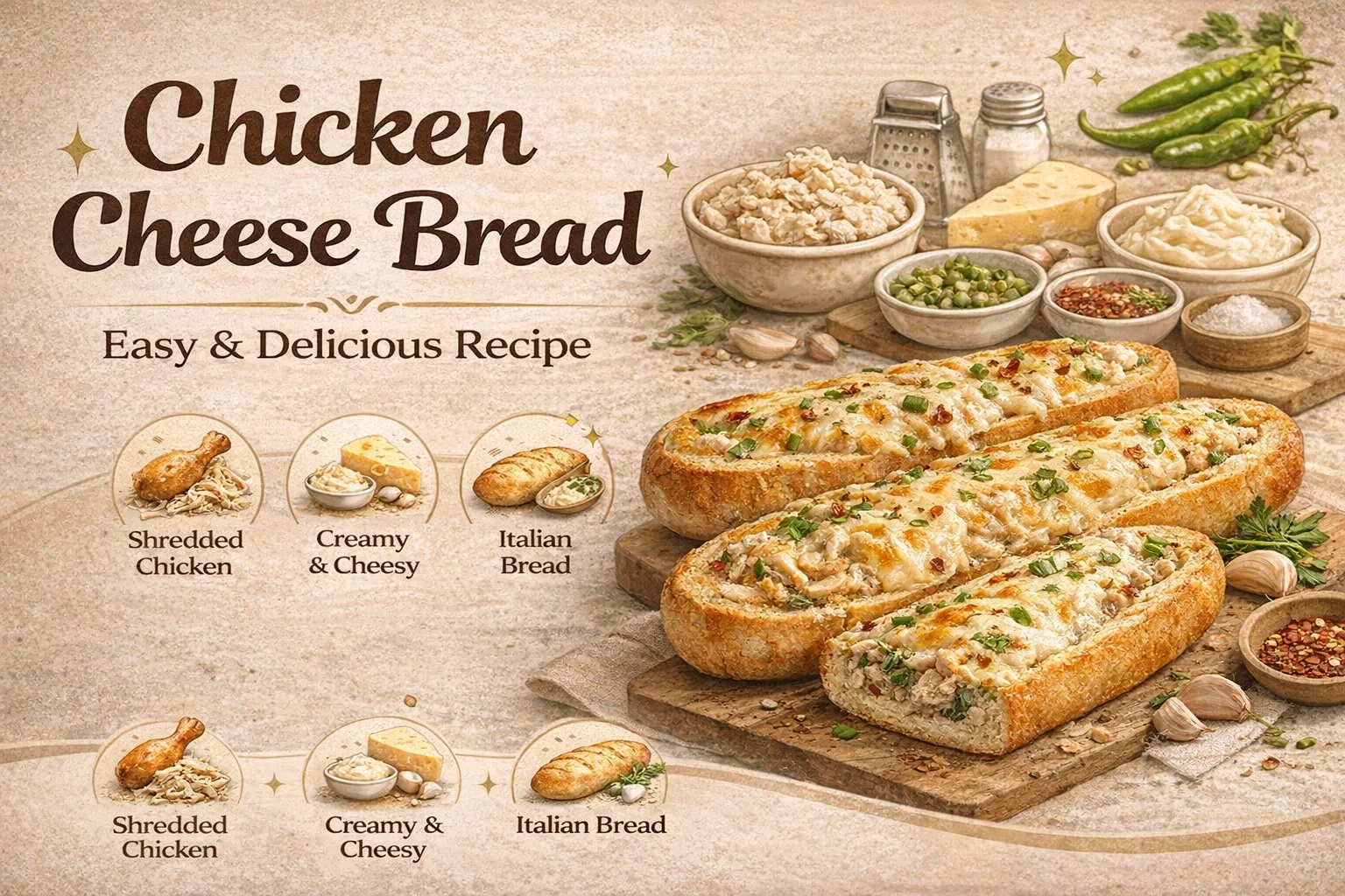 There is something undeniably magical about the smell of toasted bread, melting cheese, and savory garlic wafting through a kitchen. It is the ultimate olfactory signal that comfort is on the way. If you are looking for a recipe that combines the crunch of a perfectly baked crust with a creamy, protein-packed center, look no further than this homemade Chicken Cheese Bread. This isnt just your average sandwich; it is a hollowed-out vessel of deliciousness that turns a simple loaf of Italian bread into a gourmet experience. Whether you are hosting a game day party, looking for a quick weeknight dinner, or just need a cozy snack, this illustrated guide is your new best friend.