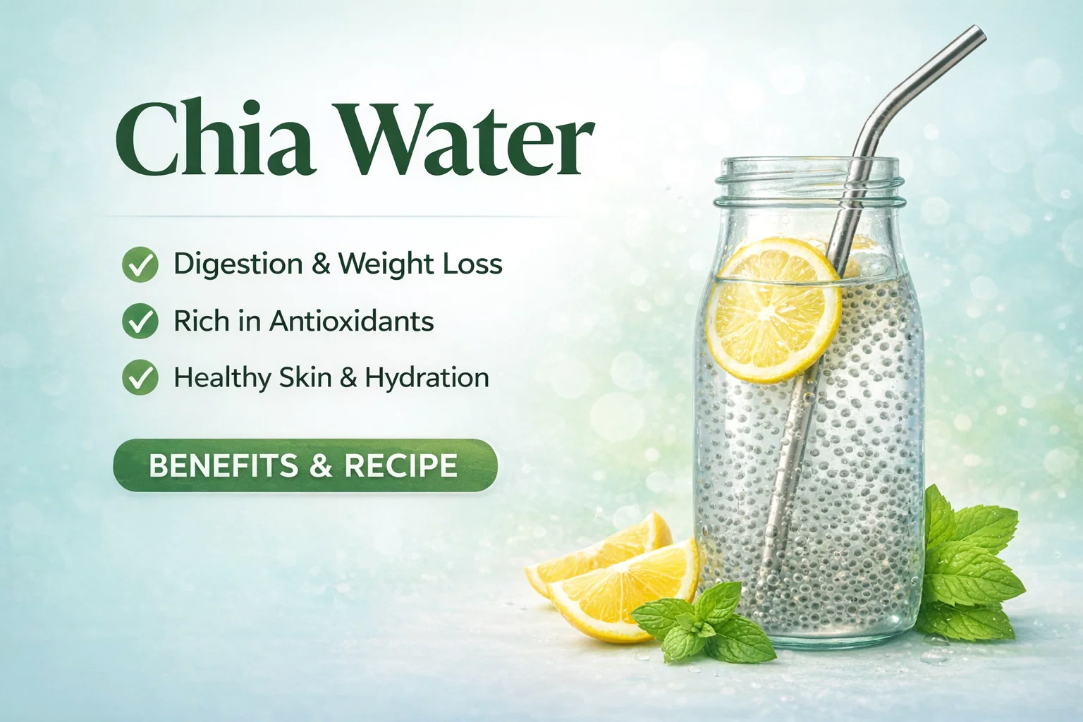 Chia Water Recipe Benefits Weight Loss, Digestion Glowing Skin