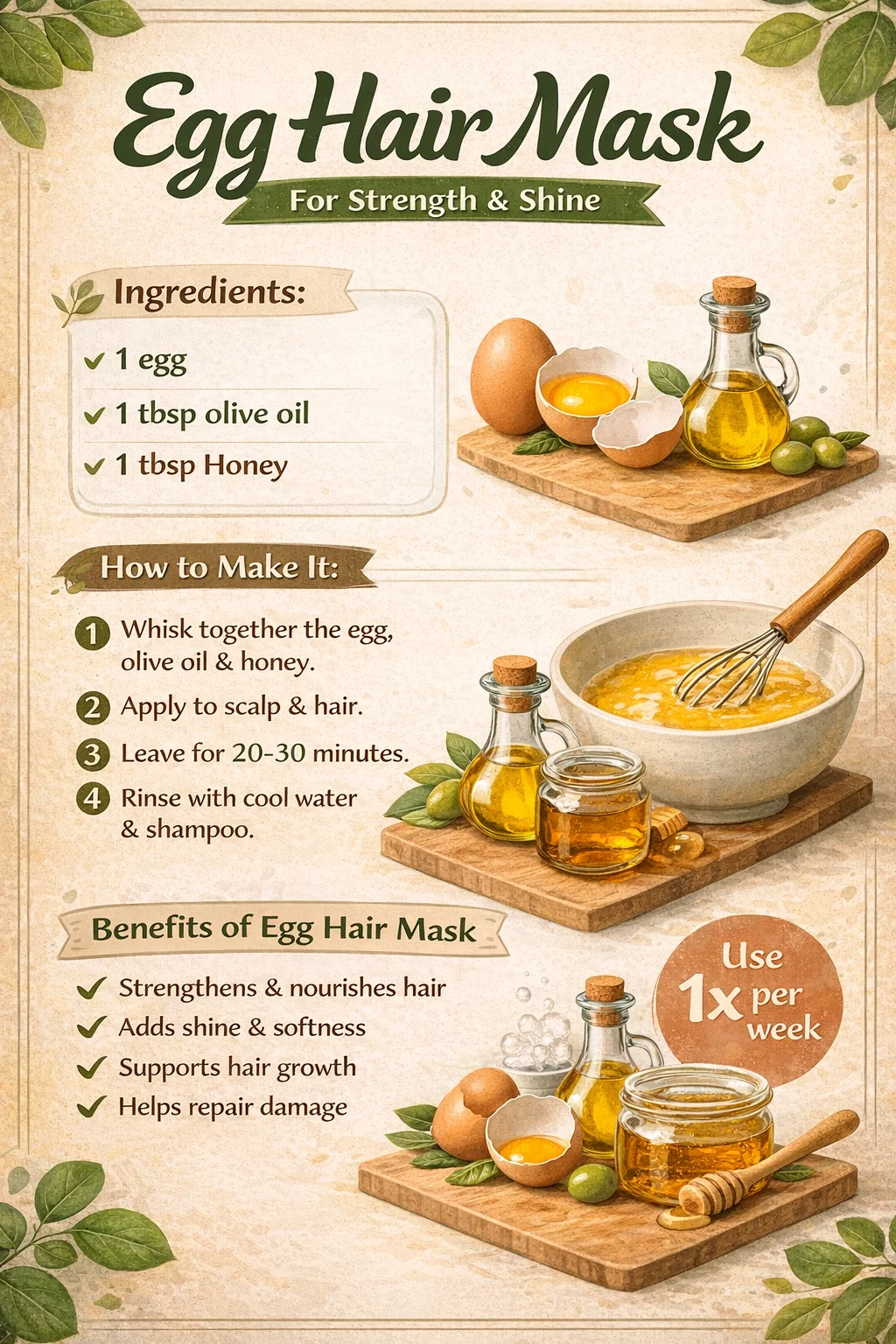As mentioned, the egg is the star of the show. While some people prefer to use only the yolk (for moisture) or only the white (for oil control), using the whole egg provides a balanced treatment suitable for most hair types. The yolk contains fats and vitamins that condition the hair, while the white contains enzymes that cleanse the scalp and provide the structural protein boost.