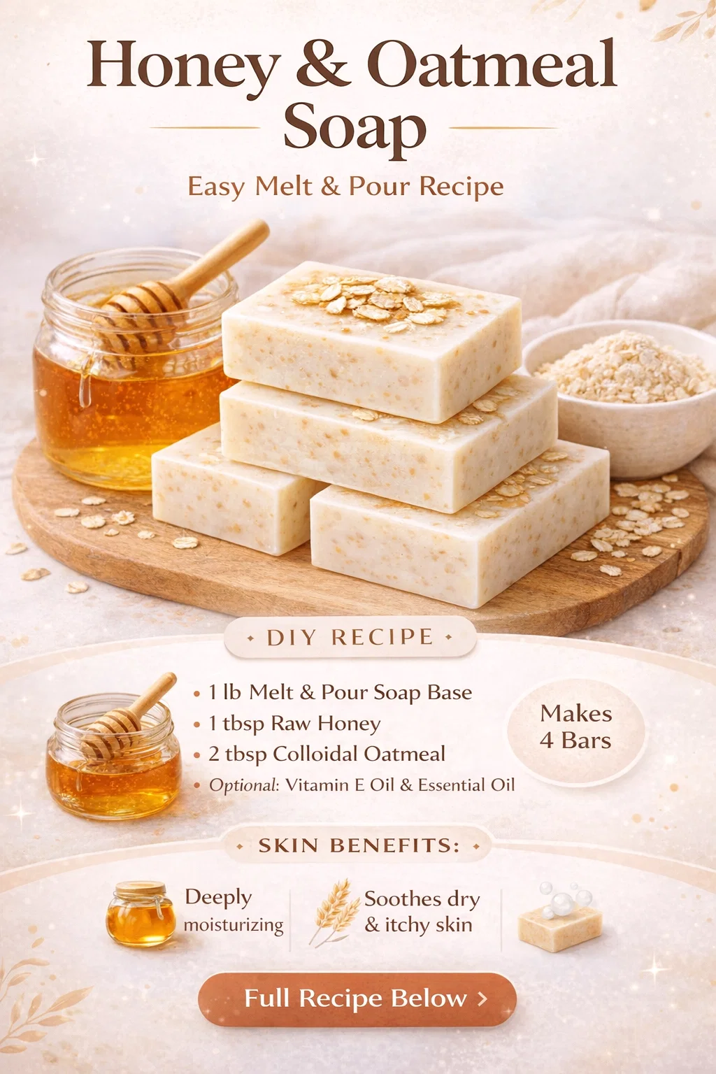 DIY Honey Oatmeal Melt and Pour Soap Recipe for Dry Skin Easy 4-Bar Tutorial