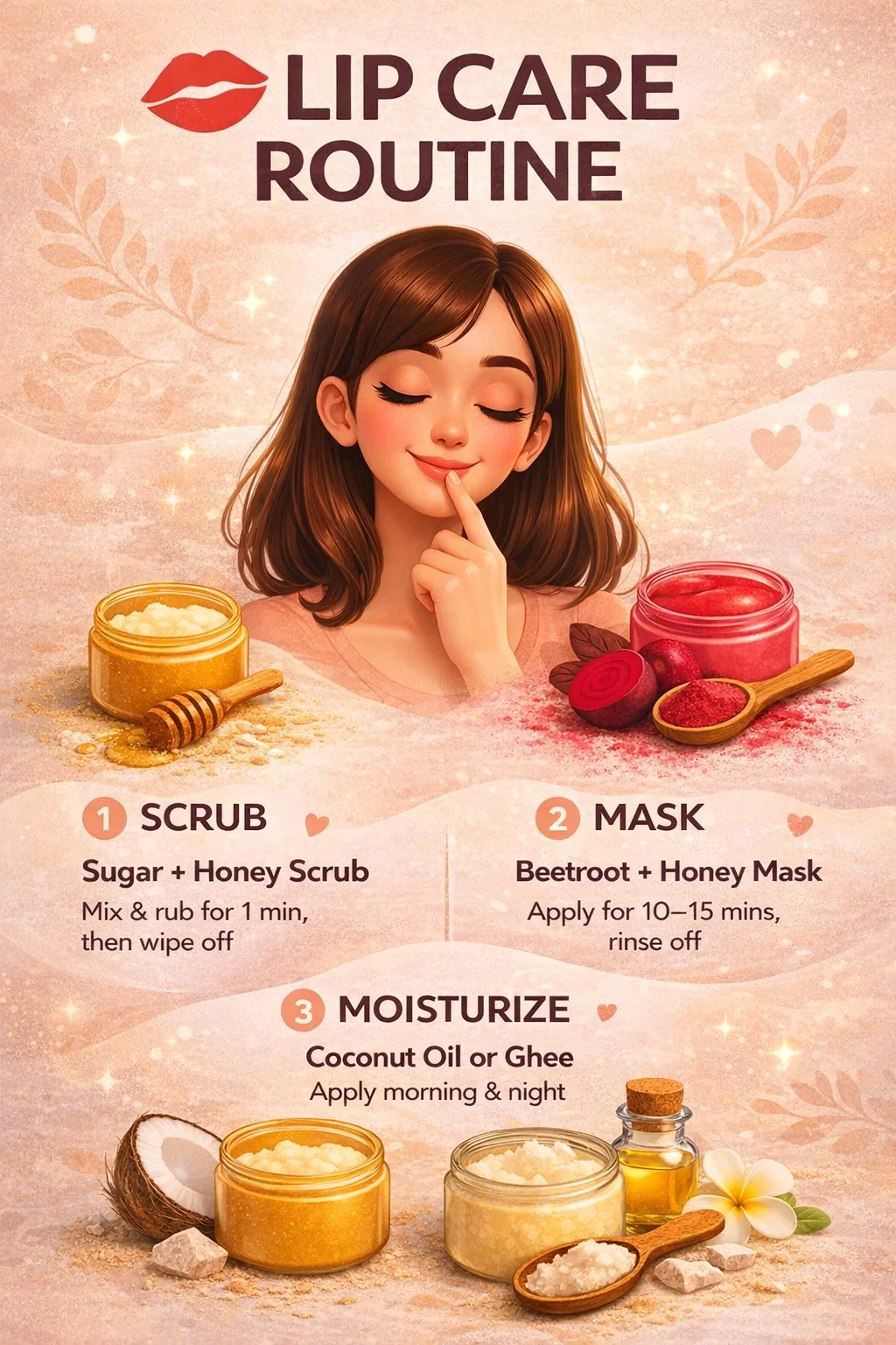 DIY Lip Care Routine for Soft Pink Lips Natural Scrub, Mask Moisturizer Home Remedies