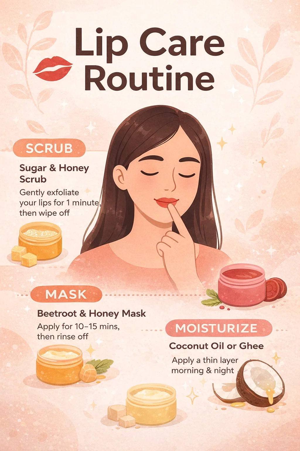 DIY Natural Lip Care Routine Scrub, Mask Moisturizer for Soft Lips