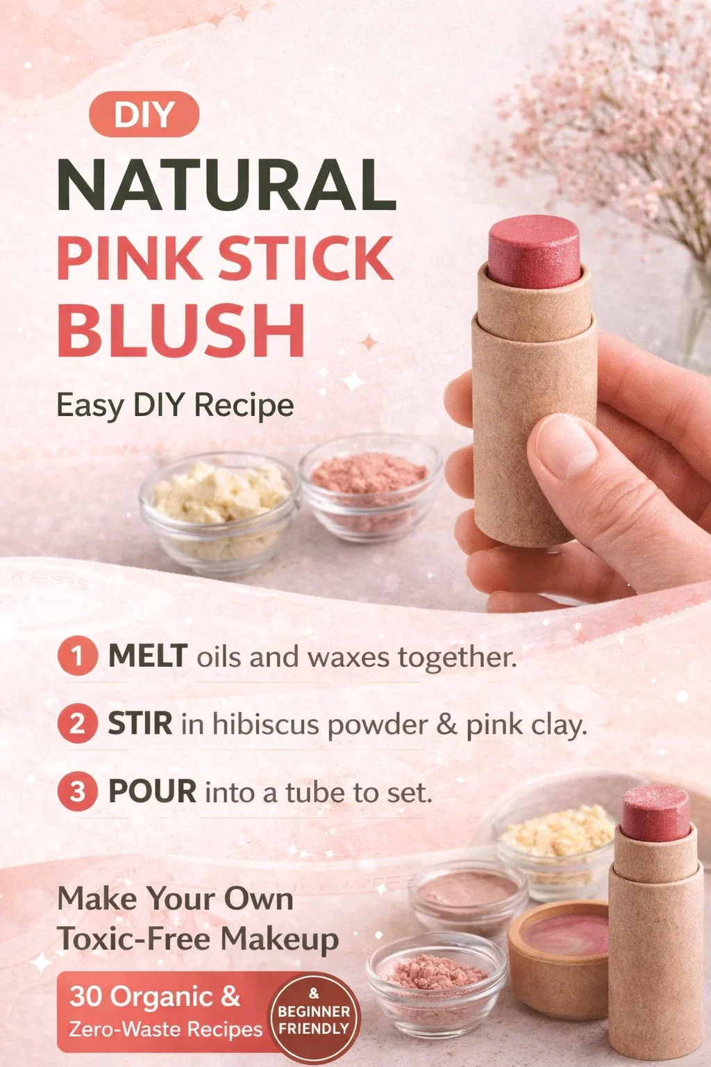 DIY Natural Pink Stick Blush Zero-Waste Solid Makeup Recipe Guide