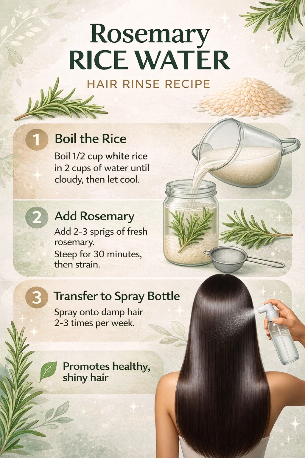 DIY Rosemary Rice Water for Hair Growth Shine Natural Hair Rinse Recipe