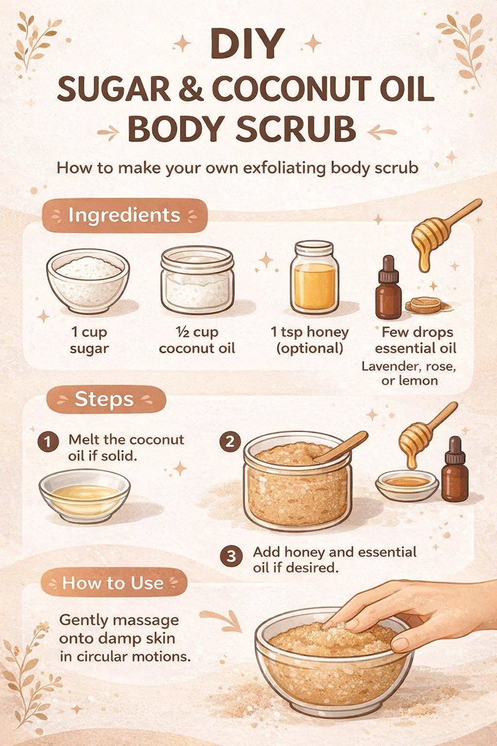 DIY Sugar Coconut Oil Body Scrub Recipe for Glowing Skin 3 Easy Steps