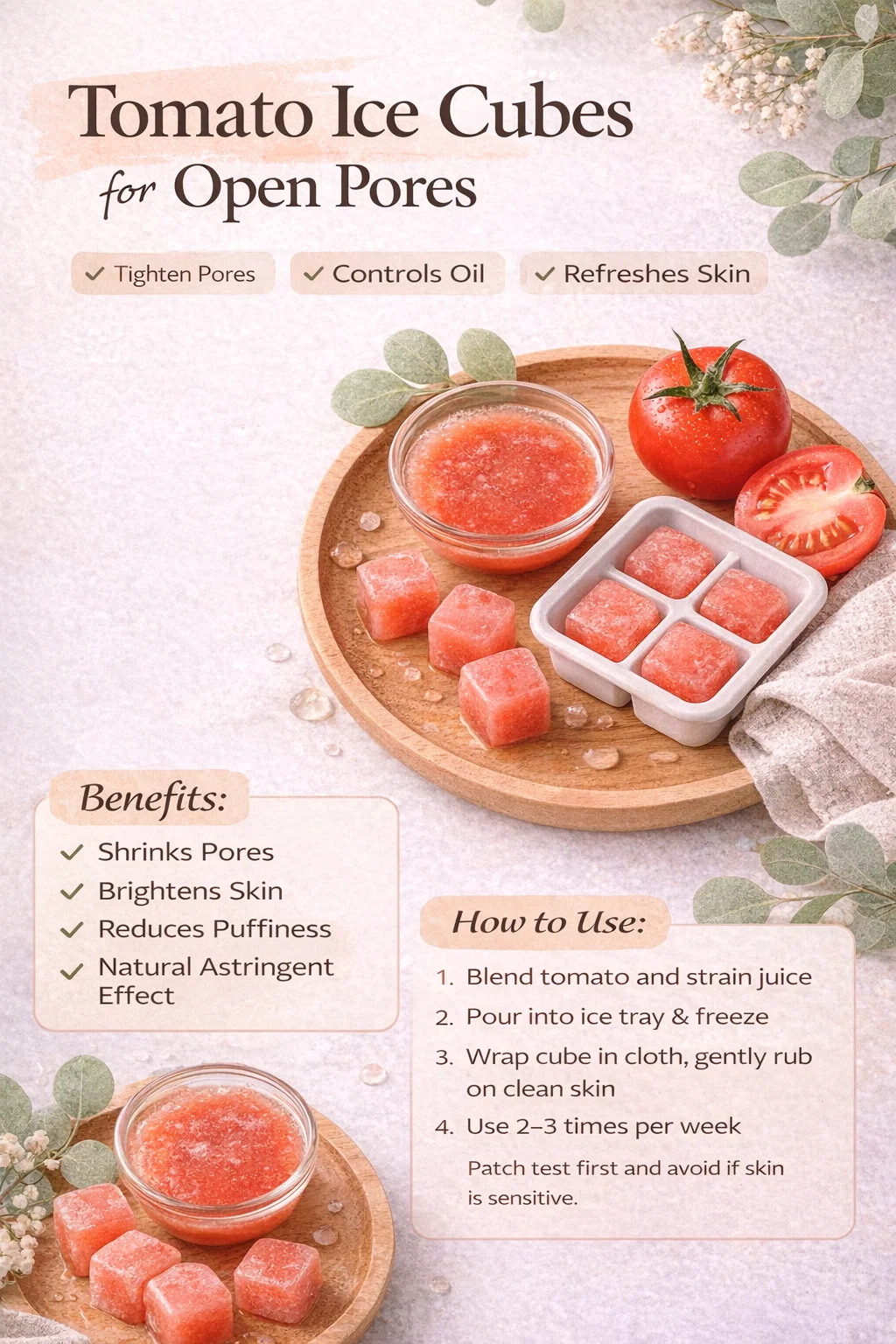 DIY Tomato Ice Cubes for Open Pores Natural Skin Tightening Oil Control Remedy