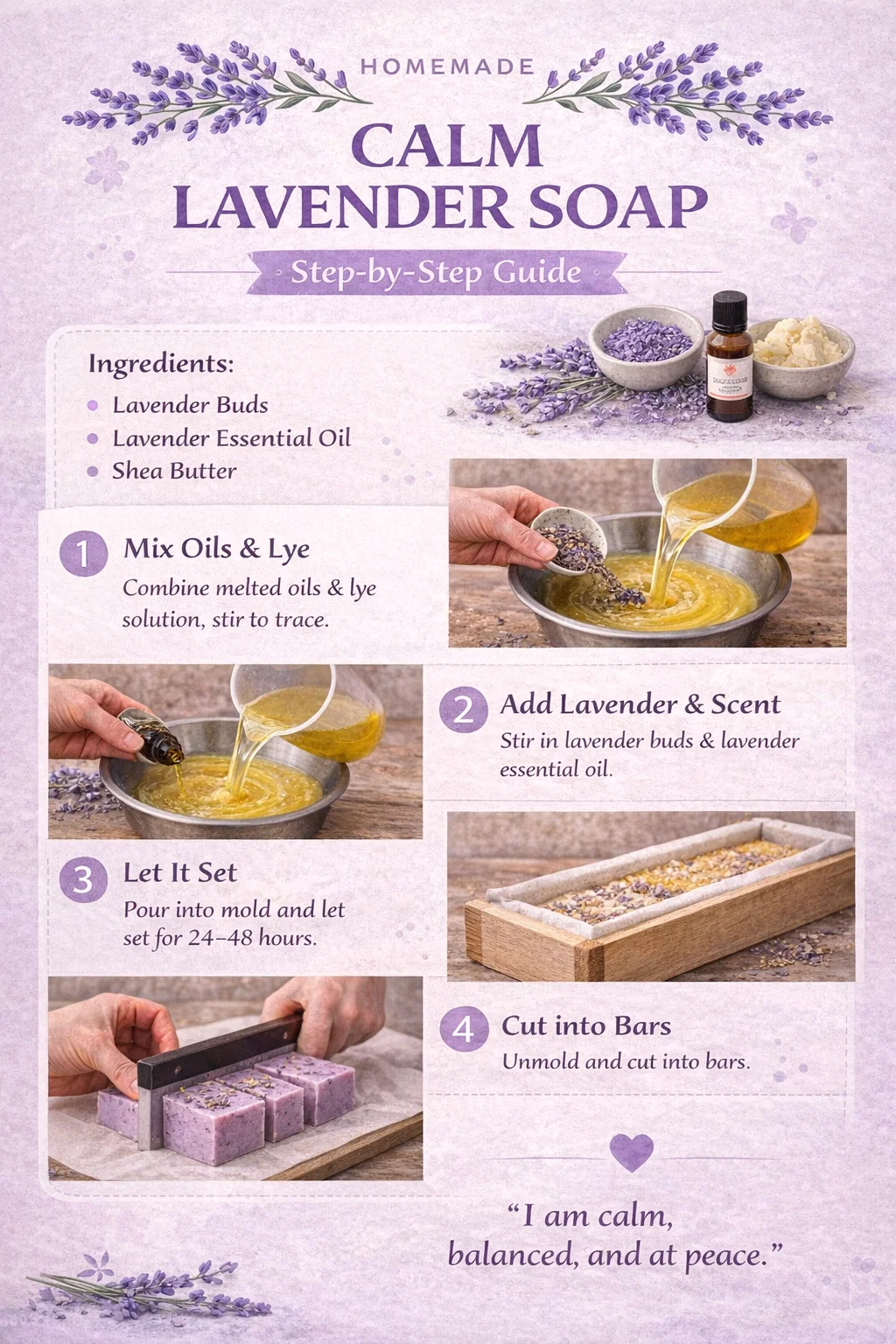 Easy Homemade DIY Calm Lavender Soap Recipe with Essential Oils and Shea Butter