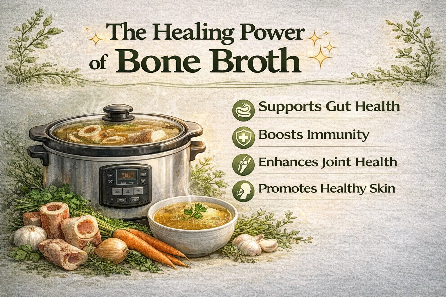There are countless reasons to add this savory liquid to your daily routine. From internal healing to external beauty, the benefits are comprehensive. Let’s dive into the four most significant ways bone broth supports your body.
