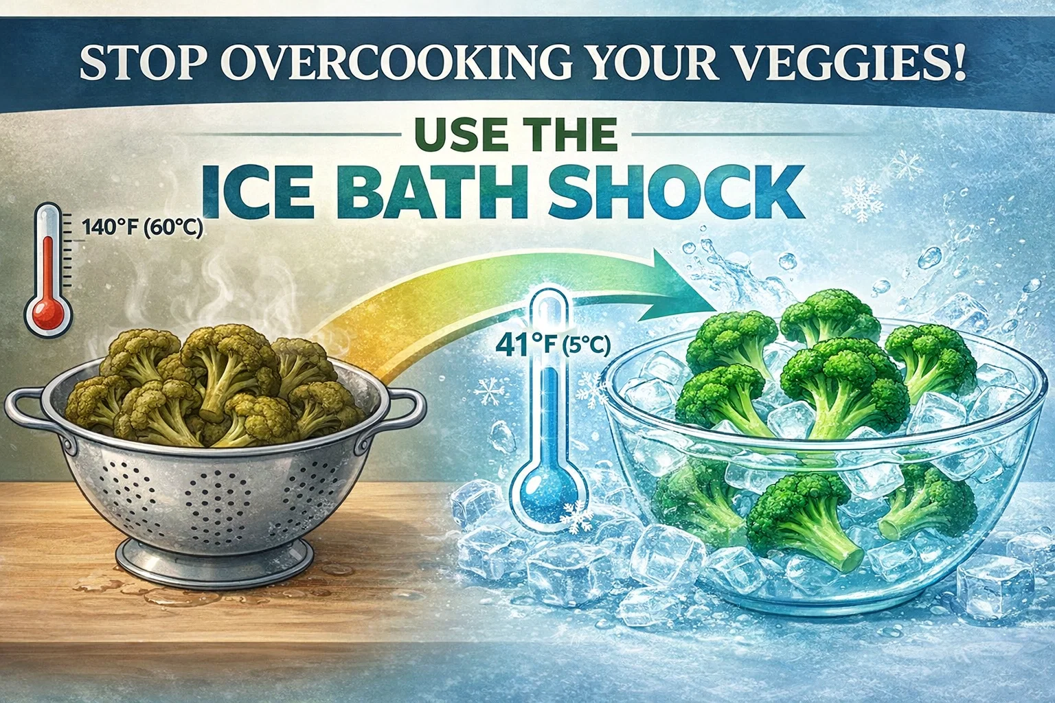 Have you ever spent time carefully selecting the freshest organic broccoli or vibrant snap peas at the farmers market, only to have them turn a depressing shade of army green by the time they hit your plate? It is a common frustration for home cooks and meal prep enthusiasts alike. We often blame the stove or the timing, but the real culprit is usually something much simpler: residual heat. When you pull vegetables out of boiling water, they do not stop cooking. Instead, the internal temperature continues to rise, breaking down cell walls and destroying the very nutrients you were trying to preserve. This is where the science of the ice bath shock comes in, transforming your kitchen results from mushy and dull to professional grade with one simple, cold step.