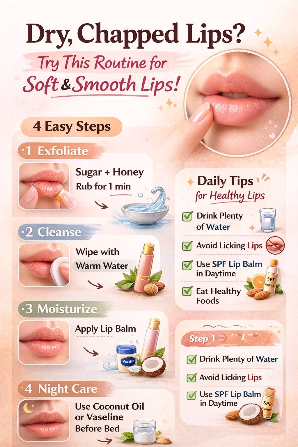 How to Get Soft Hydrated Lips 4-Step Dry Lip Routine Tips