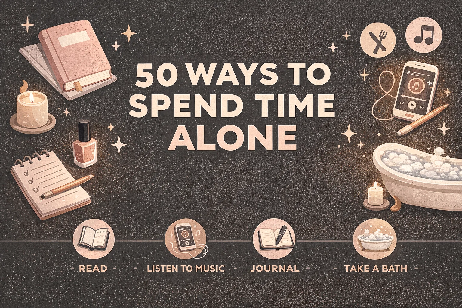 Embracing solitude is one of the most transformative skills you can develop in the modern world. While society often emphasizes the importance of constant social connection, there is a profound power in learning how to be your own best friend. The image provided highlights fifty distinct ways to spend time alone, ranging from simple acts of self-care like taking a long bath to productive milestones like fixing your resume or setting intentions for the future. Whether you are an introvert who thrives in quiet spaces or someone looking to break away from the noise of a busy schedule, learning to enjoy your own company can lead to better mental clarity, increased creativity, and a stronger sense of self-reliance.
