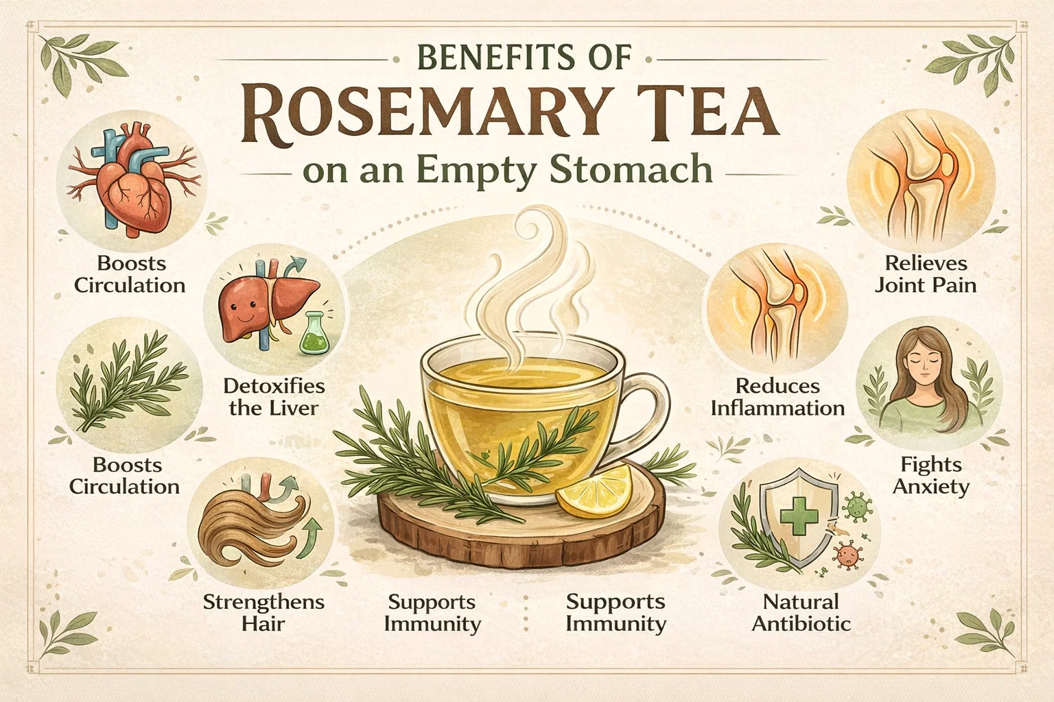 Discover the natural power of rosemary tea on an empty stomach! This simple morning ritual is a game-changer for anyone looking to boost their wellness routine. From improving circulation to strengthening your hair, rosemary is packed with antioxidants that support your body from the inside out. It’s also a gentle way to soothe joint pain and manage daily anxiety naturally. 🌿