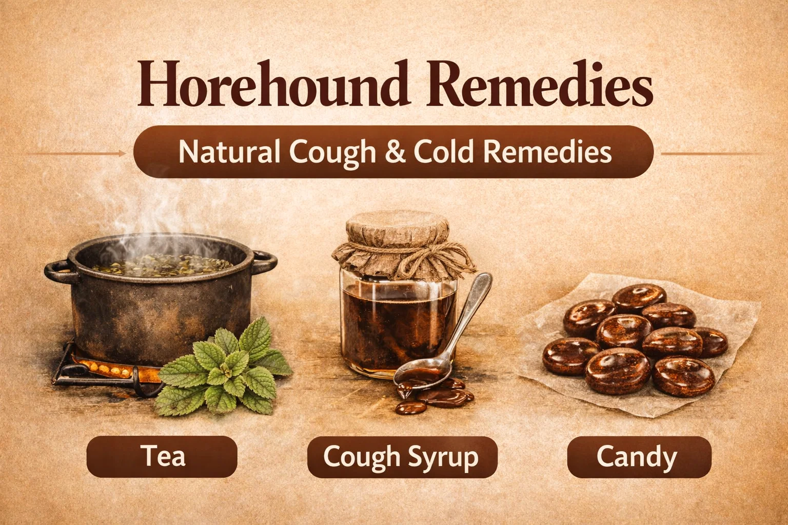 Traditional Horehound Remedies DIY Herbal Tea, Cough Syrup Candy for Sore Throats