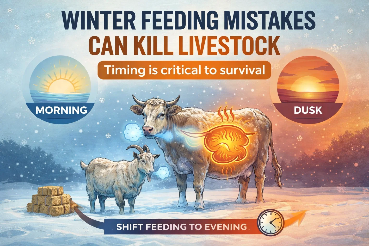 Winter Feeding Mistake Why Feeding at Dusk Saves Livestock in Freezing Weather